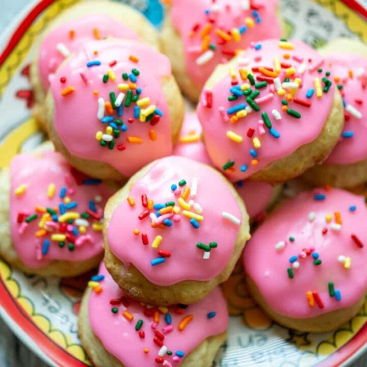These old-fashioned sour cream cookies are soft, fluffy, and topped with colorful frosting and sprinkles. The tang from the sour cream gives them a nostalgic flavor that’s perfect for any celebration.