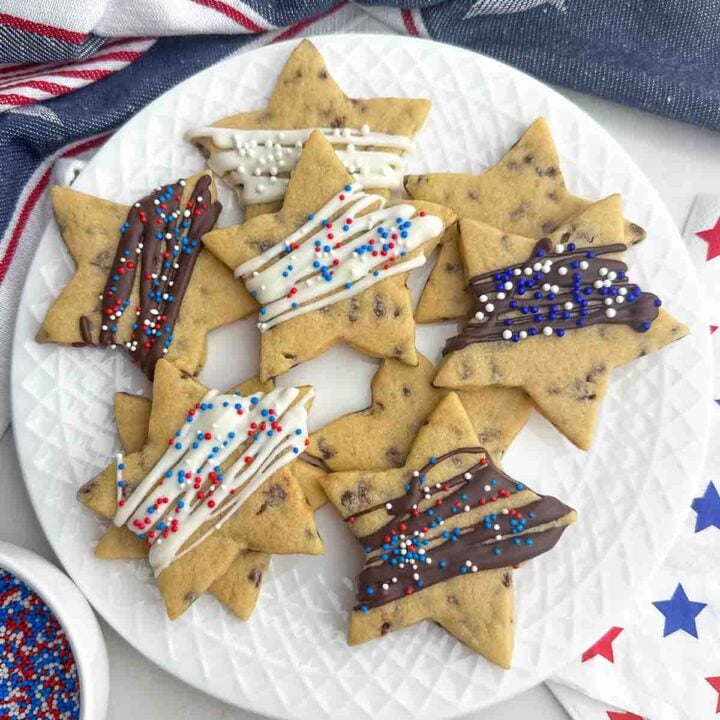 Soft, chewy Chocolate Chip Cutout Cookies are a fun twist on the classic—no chilling, no spreading, just perfect cookie-cutter shapes that taste like your favorite chocolate chip cookies. Great for decorating (or not!) for the 4th of July or any holiday.