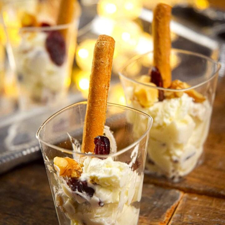 Cranberry Goat Cheese Mini Dips are easy individual appetizer cups with goat cheese, honey cranberries, and walnuts. Perfect snack for a Christmas potluck party.