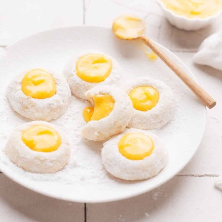 Lemon Curd Cookies are buttery, rich cookies with tangy lemon filling -- the perfect Christmas cookie for lemon lovers!