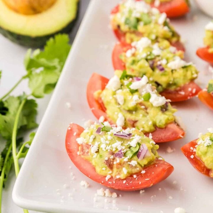 Bursting with fresh flavors, these Guacamole Bites feature ripe tomatoes filled with creamy guacamole. They're as healthy as they are tasty!