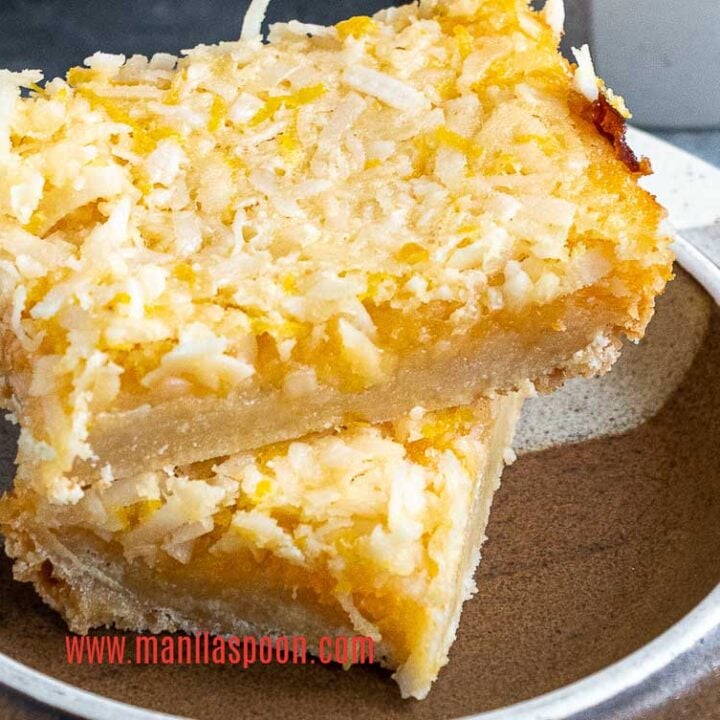 Coconut Lemon Bars with a buttery shortbread crust, tart lemon filling, and toasted coconut are tangy, sweet, and easy to make with simple ingredients.