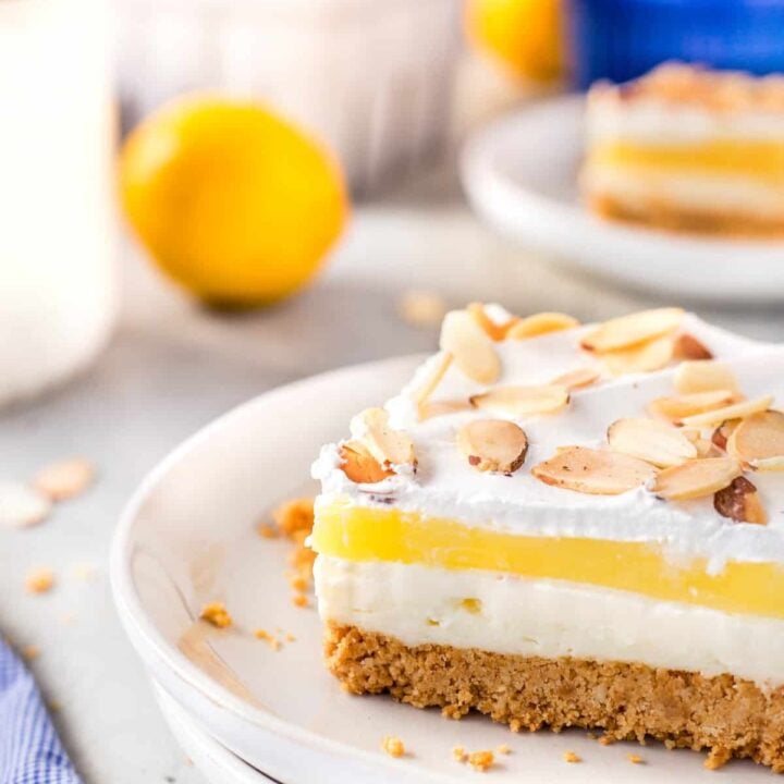 Creamy Lemon Bars with a Graham Cracker Crust are made with a full cup of lemon juice for a bright, fresh citrus flavor. The buttery, crunchy crust perfectly complements the smooth, creamy filling, giving you the rich texture of key lime pie in a lemon bar form.