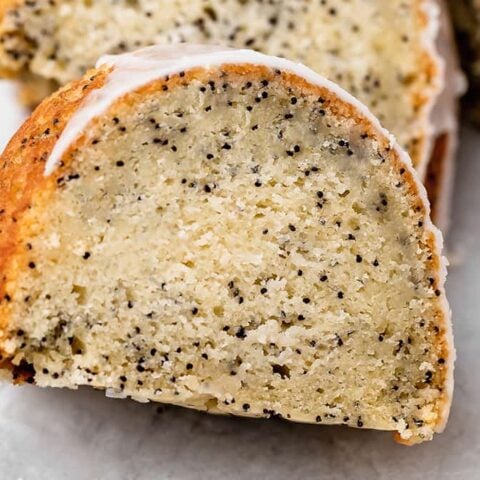 Moist Lemon Poppyseed Cake is a bright, cheery springtime dessert with zesty lemon flavor and delicious lemon glaze. Easy recipe with just a handful of simple ingredients.