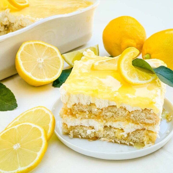 Limoncello Tiramisu is a twist on an Italian classic with layers of limoncello-soaked ladyfingers, lemon cream, and lemon curd. Great recipe for any special occasion.