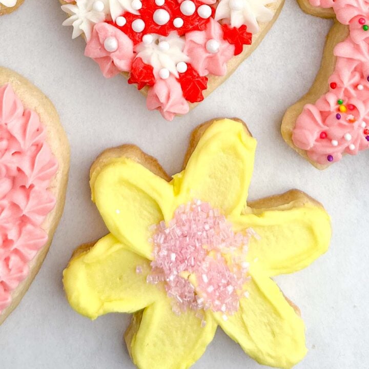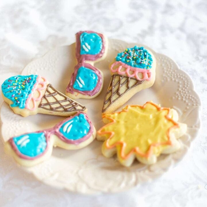 No-Spread Cut-Out Cookies are soft, delicious sugar cookies that keep their shape perfectly during baking and look stunning with glossy sugar cookie icing or fluffy buttercream frosting. It's an easy recipe for a basic sugar cookie recipe you can cut out into your favorite summery shapes for summer parties, birthdays, or any special occasion where beautiful cookies are a must.